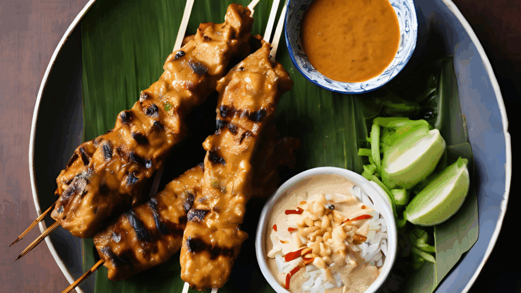 Serve the Satay Ayam hot with the homemade peanut sauce on the side.